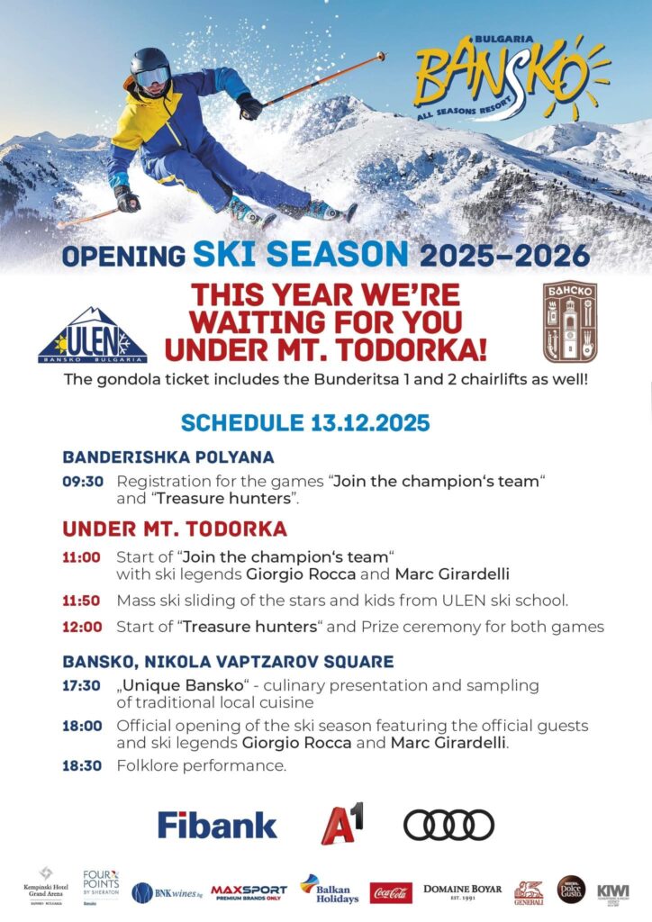 Зимният сезон 2025/2026 ще бъде първият в историята на Банско, който се открива официално на 2600 метра надморска височина. Събитията „Влез в отбора на шампиона“ и „Ловци на съкровища“ ще се проведат в ски зоната, като регистрацията за участие ще бъде на Бъндеришка поляна.