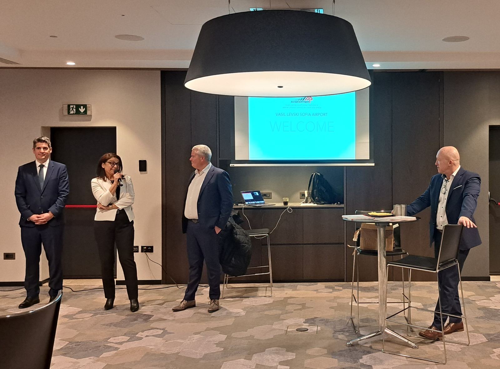 По време на официален коктейл компанията представи своята визия за развитие, както и своите местни представители. На снимката са мениджмънт на Aviapartner, г-жа Анелия Маринова – Главен Директор на ГВА и Хесус Кабайеро, главен изпълнителен директор на „СОФ Кънект“.