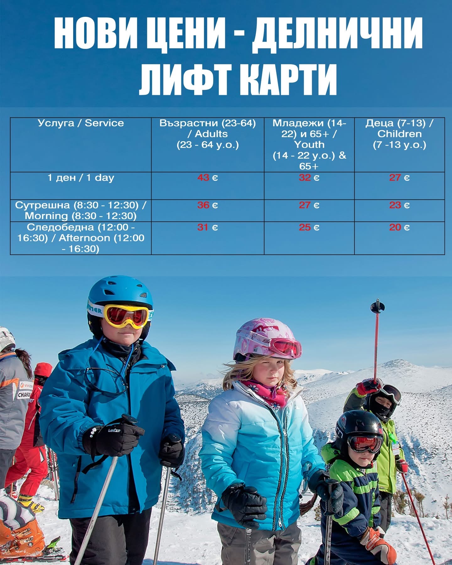 Боровец. Ски курортът Боровец обяви специално ценово предложение за всички любители на зимните спортове. През делничните дни посетителите ще могат да се възползват от намалени цени за еднодневни и полудневни лифт карти за ски зоната.