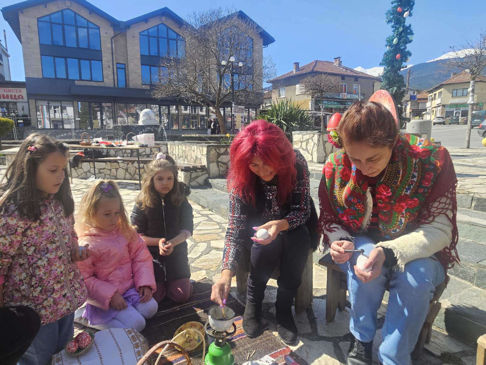 Празничната атмосфера обхвана и Добринище, където се проведе великденската работилница „Шарено яйце“, организирана от читалище „Димитър Благоев – 1925“. На централния площад деца и възрастни се включиха в боядисването на яйца восък и дървени писалки, както и в приготвянето на традиционни обредни хлябове.