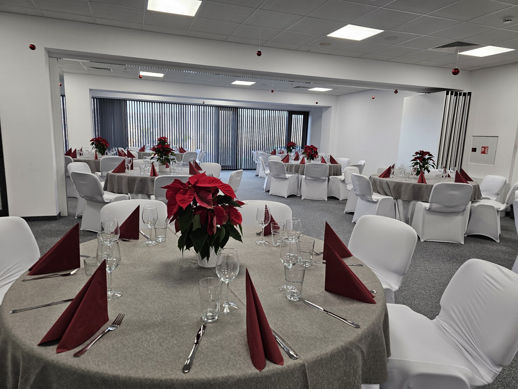 Хотелът предлага модерно оборудвани зали, подходящи за различни формати на събития – от малки работни срещи до големи конференции. Основните предимства включват: