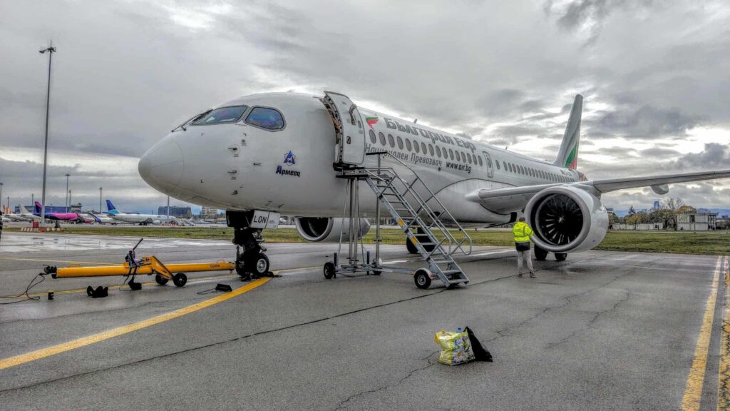 Заявка за “Гинес” на летище “Васил Левски”: Двама българи теглиха най-новия самолет на “България Еър” – Airbus A220-300