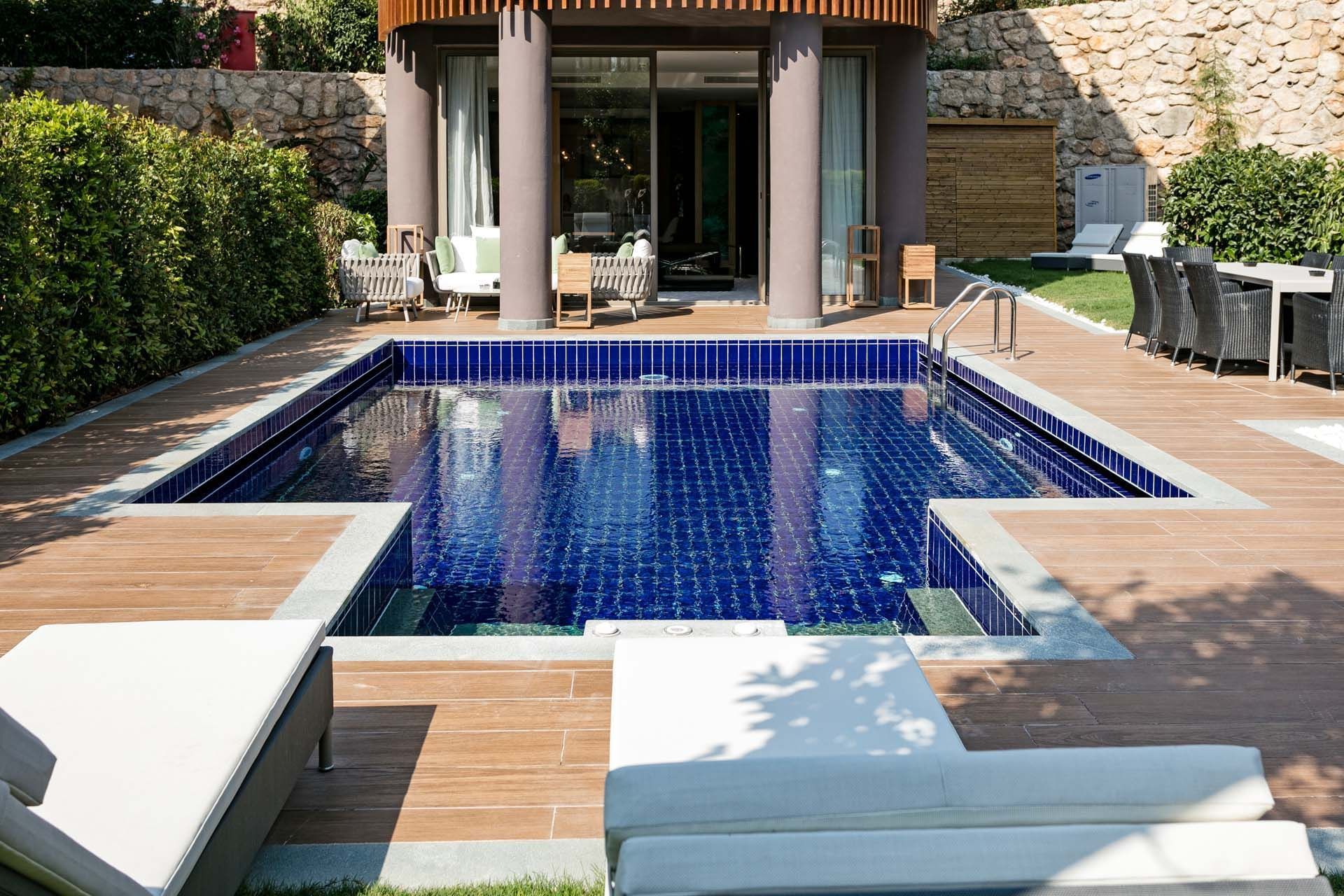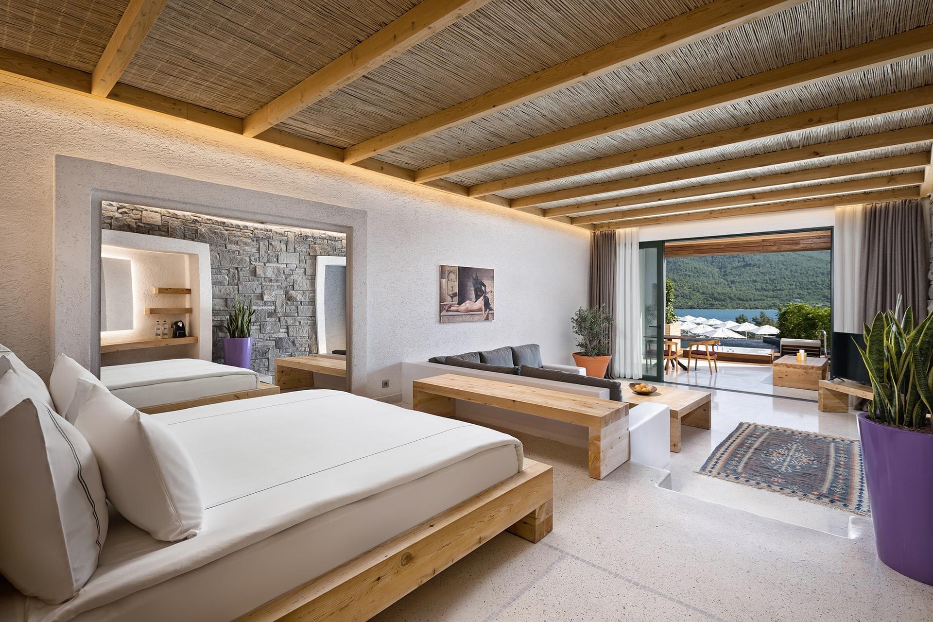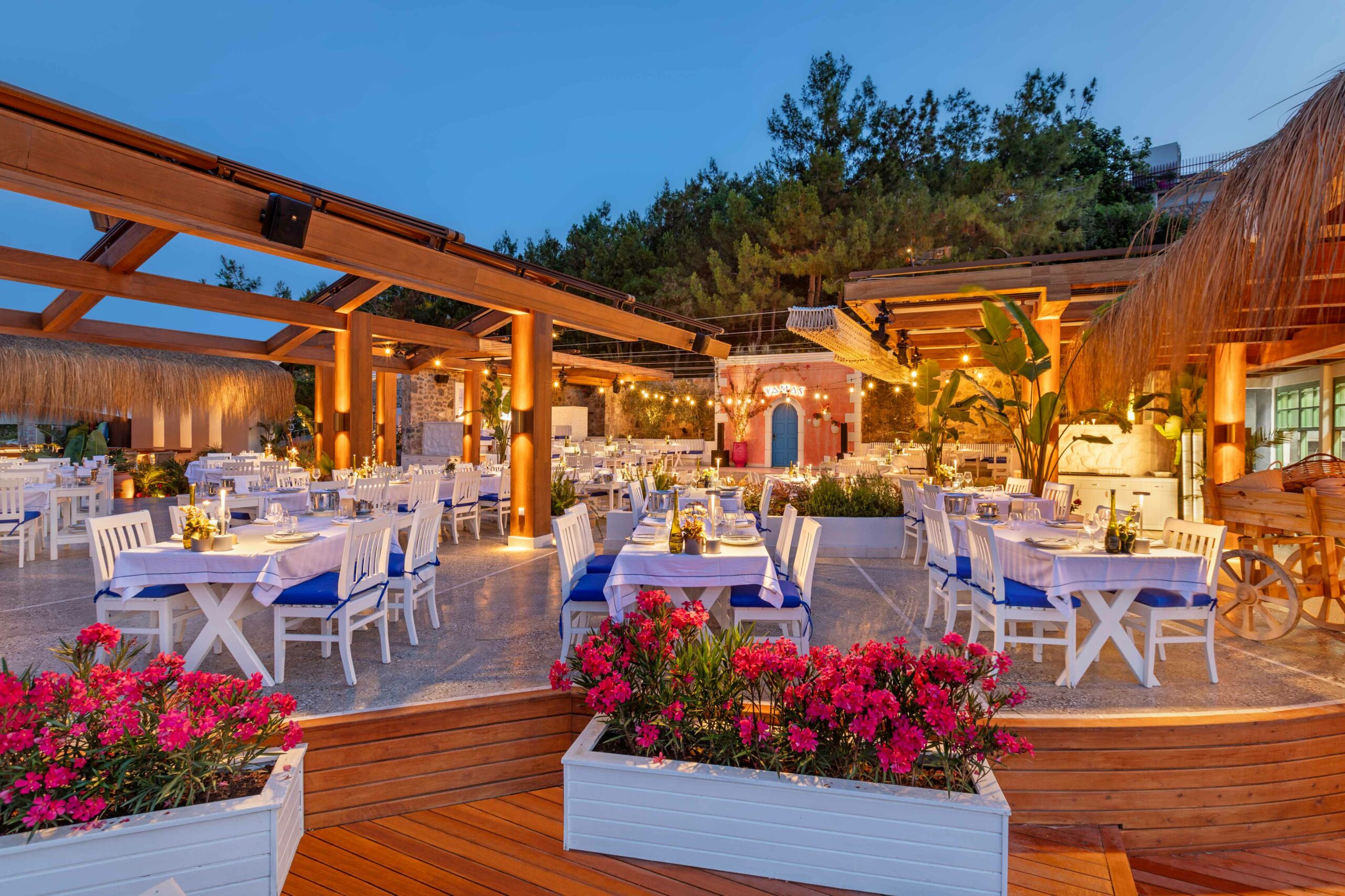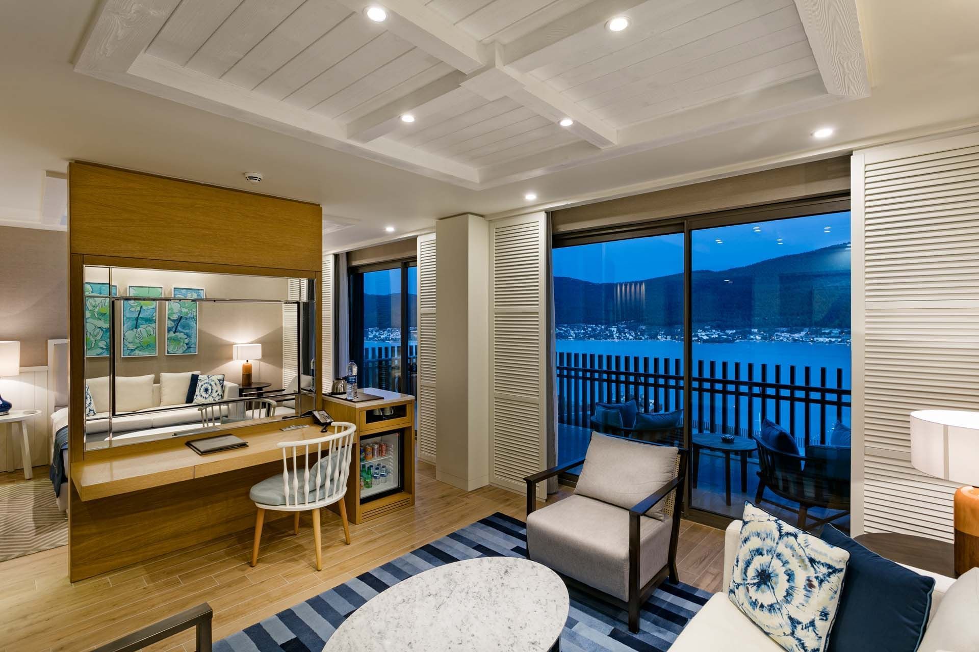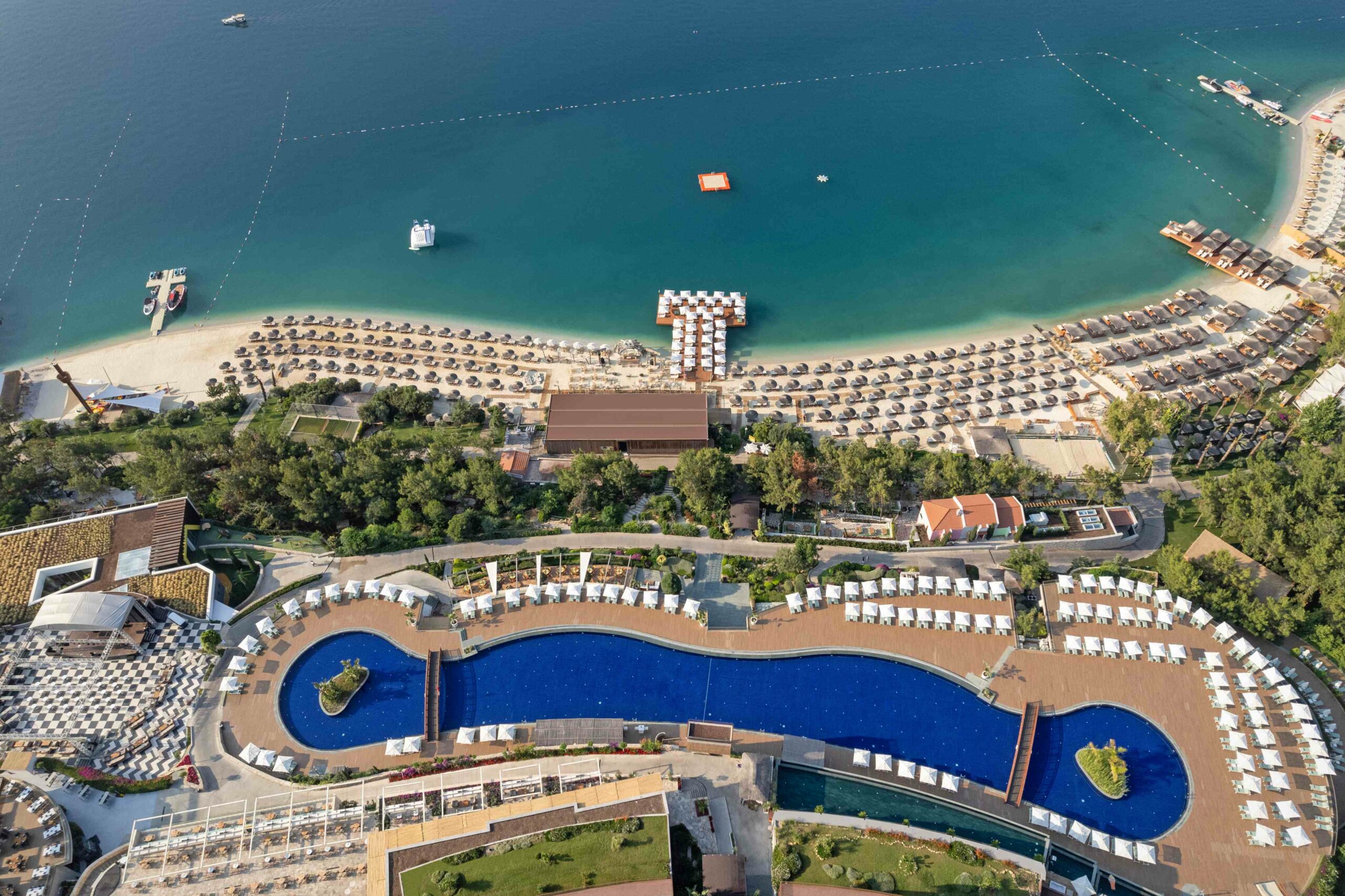 Хотелът впечатлява с дизайнерски интериори, просторни стаи и вили с изглед към Егейско море, пет изискани а ла карт ресторанта, включително италиански, японски и турски, както и първокласен SPA център с панорамна сауна, турска баня, инфинити басейн и VIP зони за релакс.