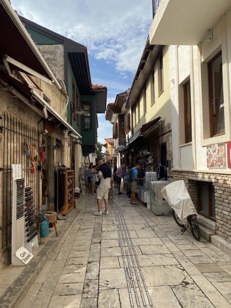 За туристите от България пешеходната обиколка на Анталия обикновено започва от площада пред паметника на Кемал Ататюрк. Градът е прорязан от трамвайни релси, които като важна артерия пресичат централната част. Местните наричат трамвайният транспорт “метро”, но подземна част всъщност няма.