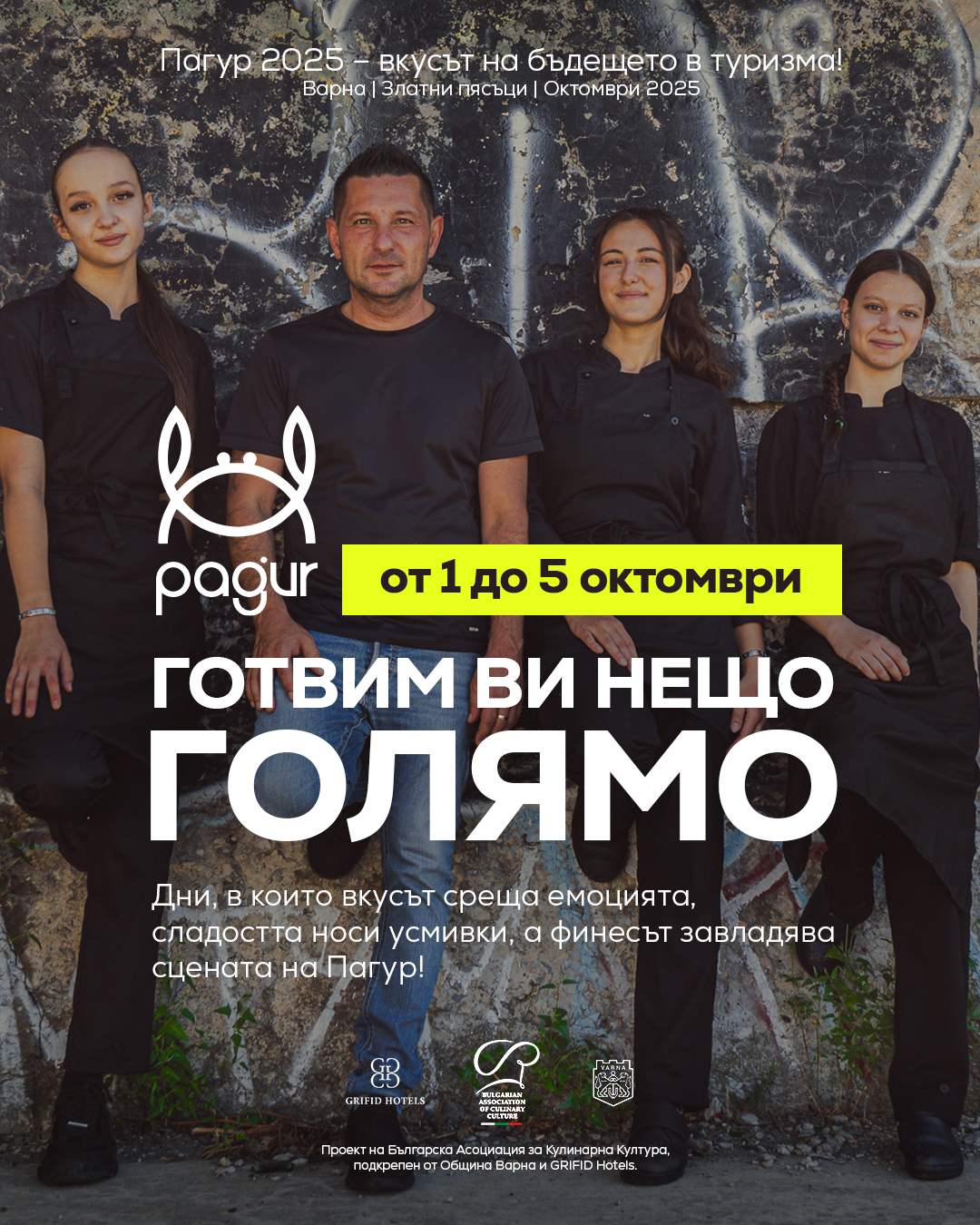 Златни пясъци. От 1 до 5 октомври 2025 г. Грифид хотел НОА, намиращ се в курортен комплекс Златни пясъци, ще бъде домакин на фестивала „Пагур”, който ще събере млади готвачи, бармани, сладкари и сервитьори в международен празник на кулинарията и гостоприемството. Форумът обещава да бъде повече от кулинарно събитие – мост между образованието и бизнеса, възможност за нови партньорства и бъдещи кариери, вдъхновение за всички, които вярват, че туризмът е изкуството да създаваш преживявания. Организатор е Българска асоциация за кулинарна култура с подкрепата на Община Варна.