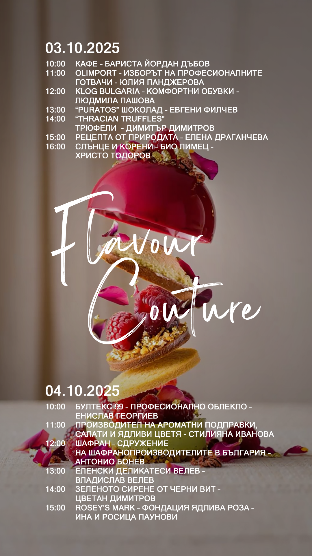 Сред специалните участници в програмата са бариста Йордан Дъбов, Евгени Филчев и шоколадите Puratos, Димитър Димитров с Thracian Truffles, Rosey’s Mark – Фондация ядлива роза, Цветан Димитров със зеленото сирене от Черни Вит и още много лектори и производители.