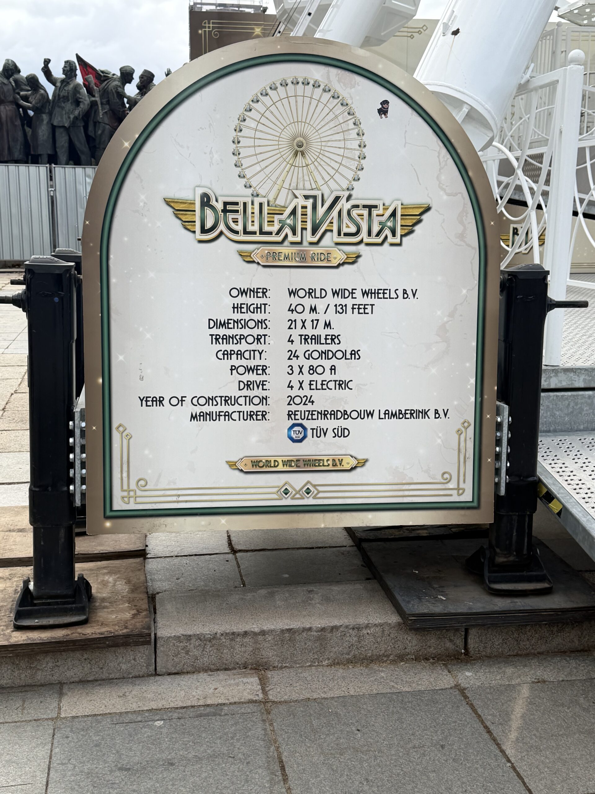 Модерната атракция Bella Vista – Premium Ride е произведена през 2024 г. и предлага впечатляващо панорамно изживяване. Колелото разполага с 24 гондоли, всяка с капацитет до 6 души, и осигурява 360-градусова гледка към столицата и Витоша. Едно завъртане продължава около 10 минути и включва няколко плавни обиколки.