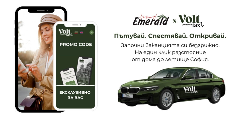 София. Туроператорът Emerald Travel обяви специална колаборация с Volt Premium Taxi, която осигурява на клиентите на компанията стилно и комфортно пътуване от и до летище София.
