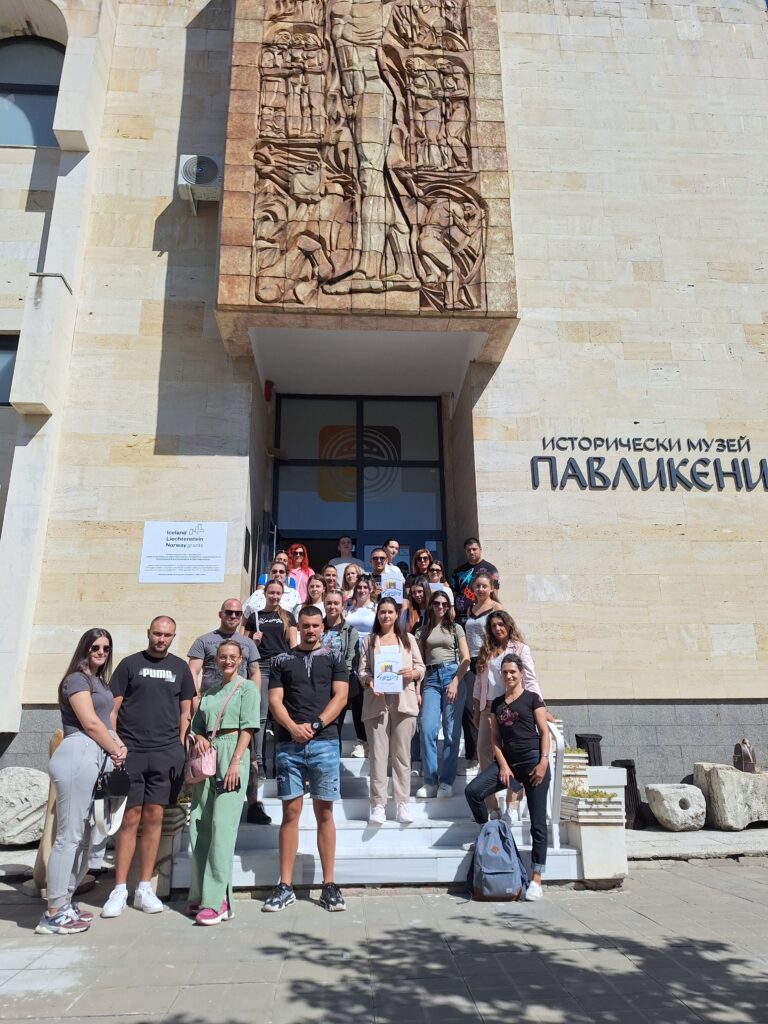 Денят за практически активности продължи с посещение на един от най-новите обекти в района на Велико Търново – Исторически музей – Павликени. Елена Чанакчиварова – Христова (управител) разказа на студентите за промяната, която тя и нейния екип изграждат в облика на обекта. След солидни проектни дейности музеят към днешна дата е едно привлекателно място за ново поколение туристи, което впечатлява с иновативност, интерактивни решения и най-вече задълбочени познания в музейното дело. „Заменихме познатото „не пипай“, което чуваме във всеки традиционен музей с коренно противоположната концепция посетителят да се докосва до всеки артефакт от местното културно наследство“, коментира тя. Бъдещите специалисти в туристическия сектор не спестиха комплиментите си и споделиха наблюдения, че за изграждане новия имидж на Исторически музей – Павликени е работено с много разбиране, професионализъм, вкус и огромна отдаденост.