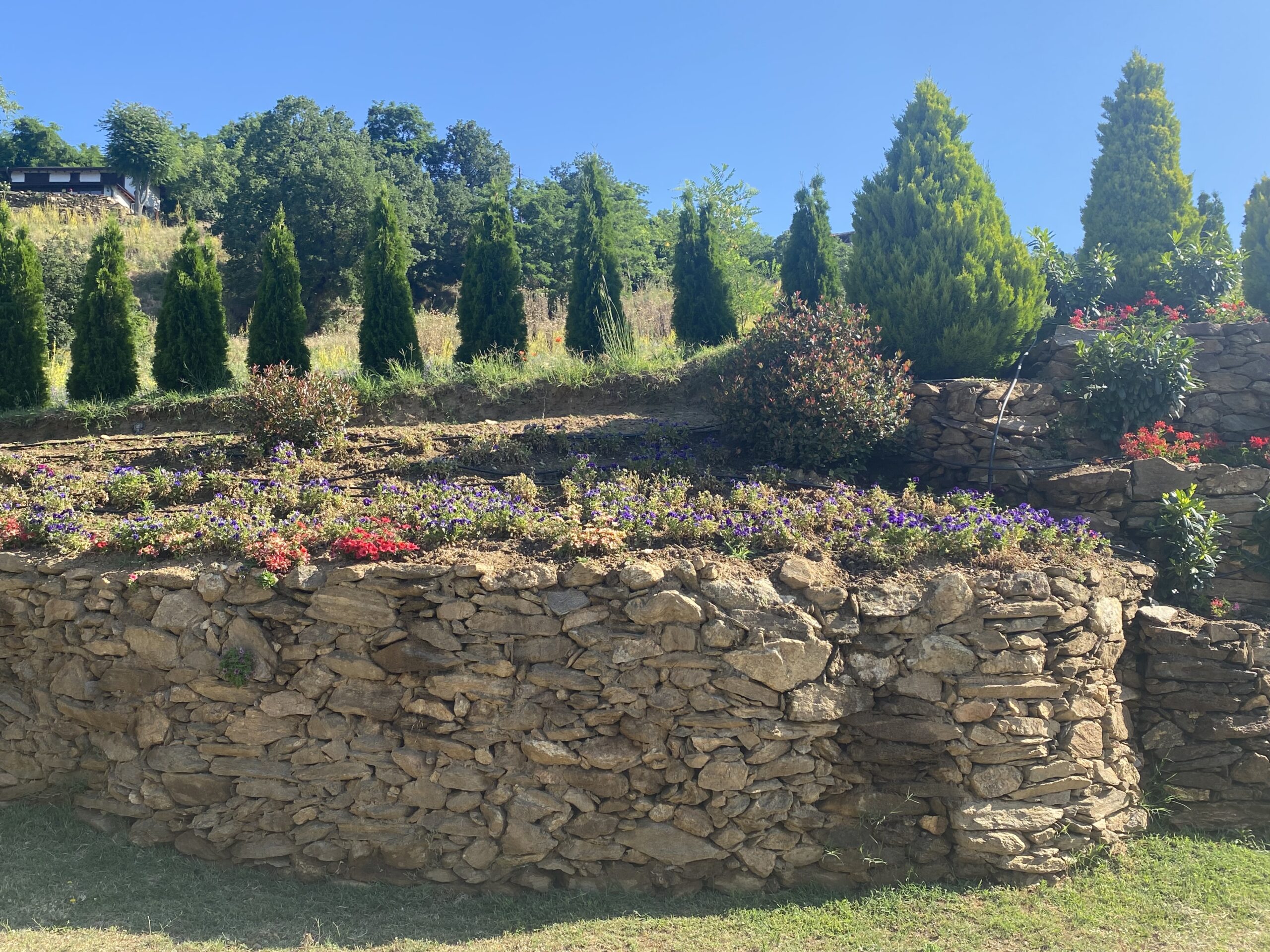Сред градините се срещат маслини, канадски кленове, бугенвилии, камелии и дори палми. Топлият микроклимат позволява отглеждането на растения, типични за южните ширини. Дървета като черницата – някога използвана за копринени буби – са също част от пейзажа.