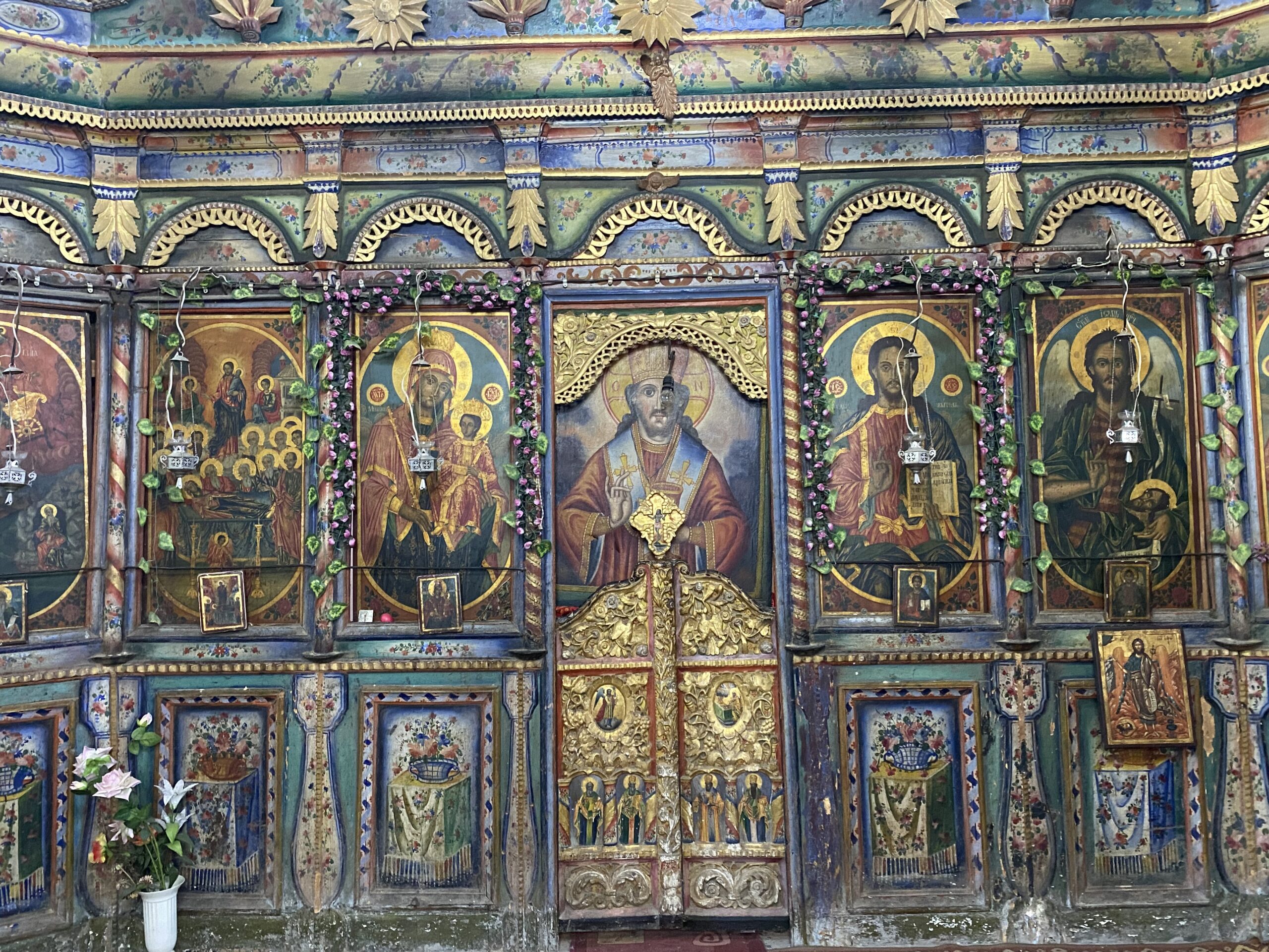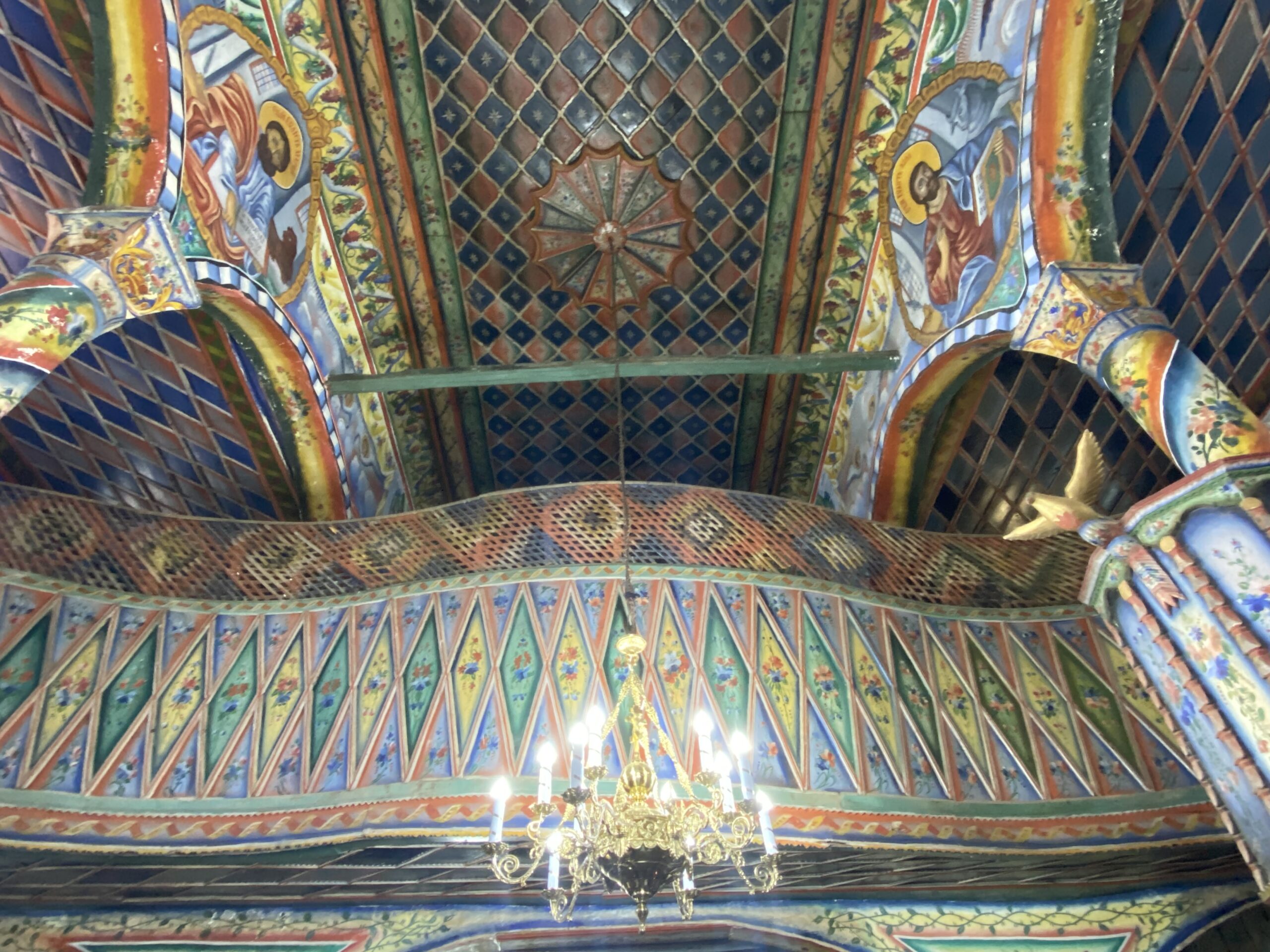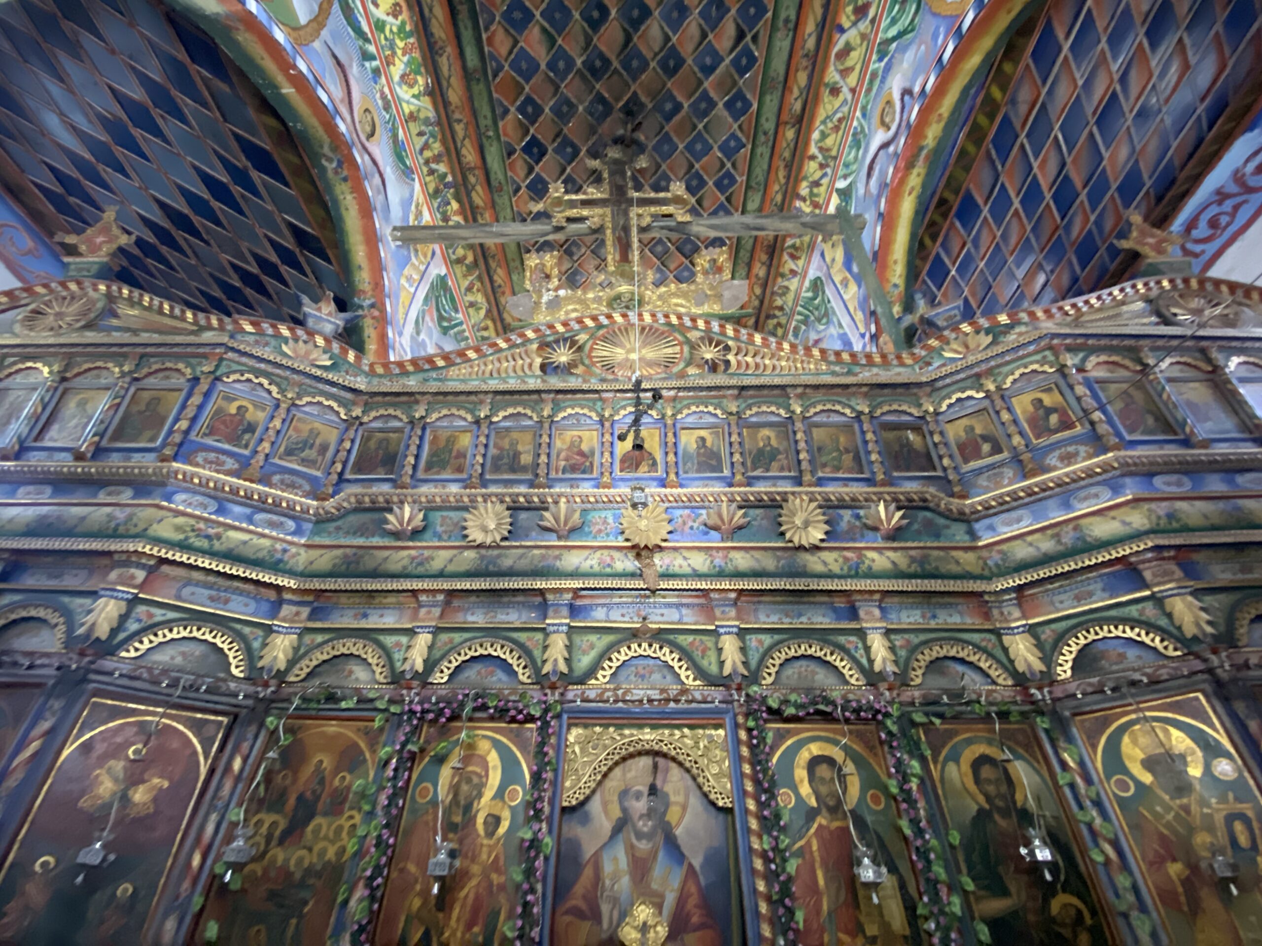 По стените му се срещат символи, които не се виждат в други църкви – череп и кости (памет за преходността), 12 гълъба (духовете на апостолите) и макове – свидетелство за някогашната търговия с билки и цветя.