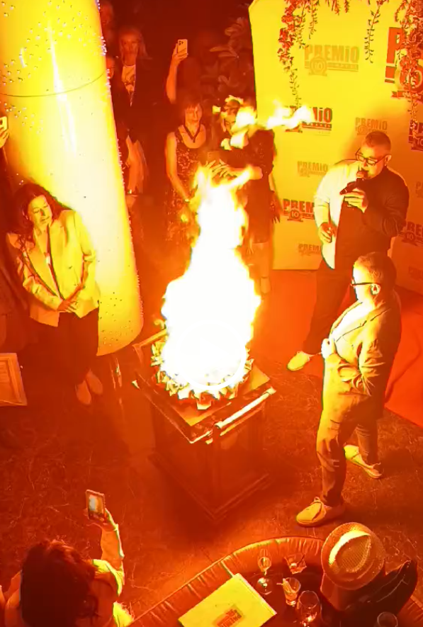 Прочутият кулинарен майстор представи торта под формата на глобус, която в мига на кулминацията бе обгърната от пламък и златен прах.