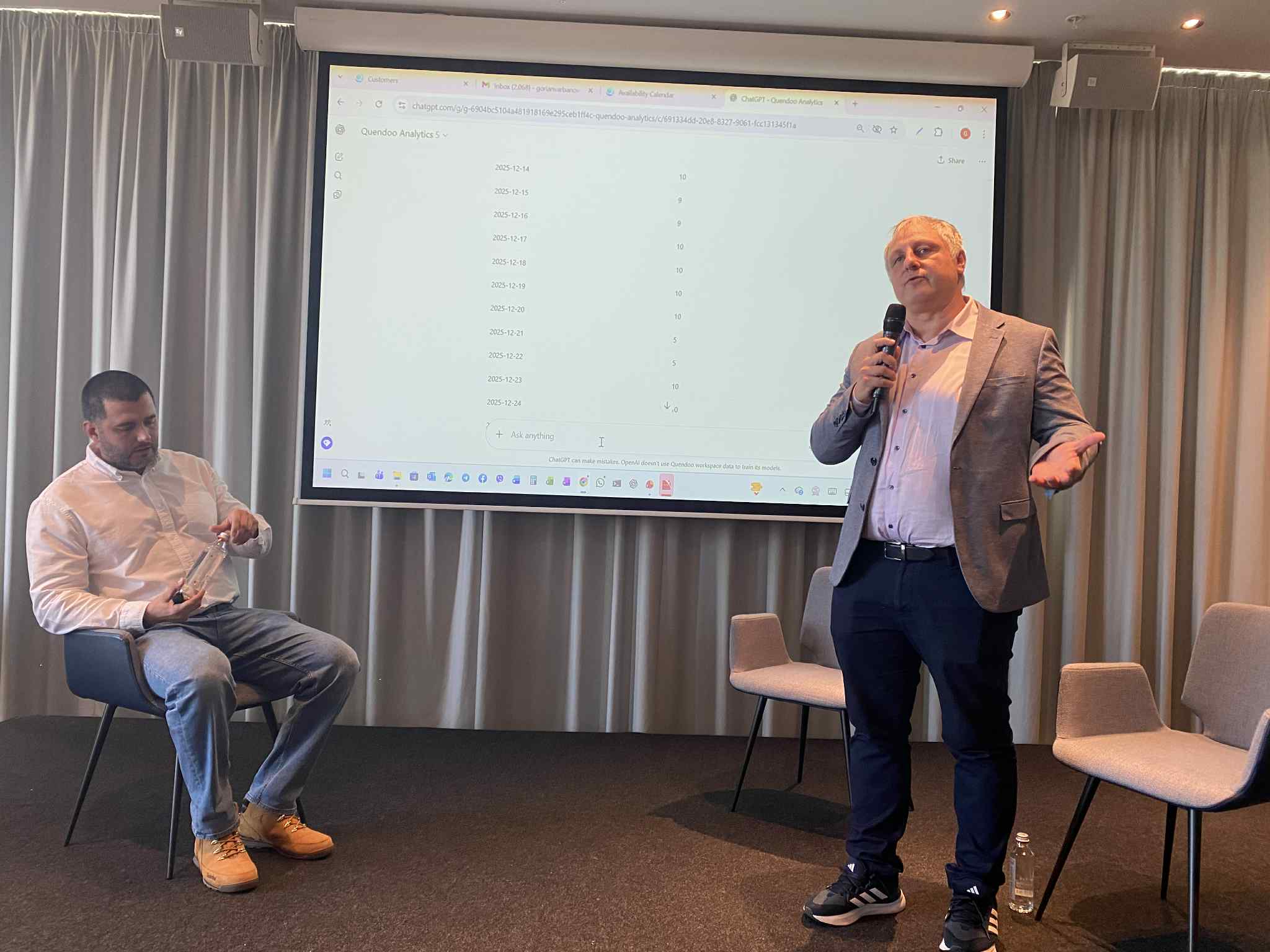 В рамките на форума бяха представени и аналитични данни за сезон 2025, нови конвенционални функционалности и AI приложения в платформата на Quendoo. Участниците видяха как технологиите могат да решават реални бизнес проблеми, да автоматизират рутинни задачи и да подпомагат вземането на решения на световно ниво.