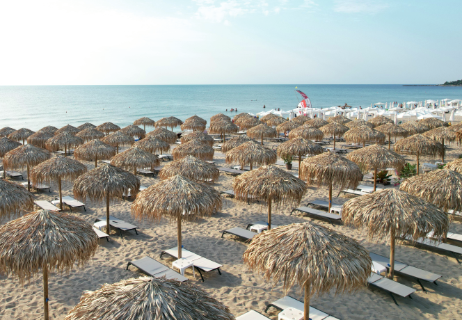 През летните месеци хотелът поддържа собствена плажна зона, която е на разположение на гостите на хотела напълно безплатно. Изключително финият пясък, плиткото море и красивата гледка са притегателната сила на всички любители на дългоочакваната морска почивка.