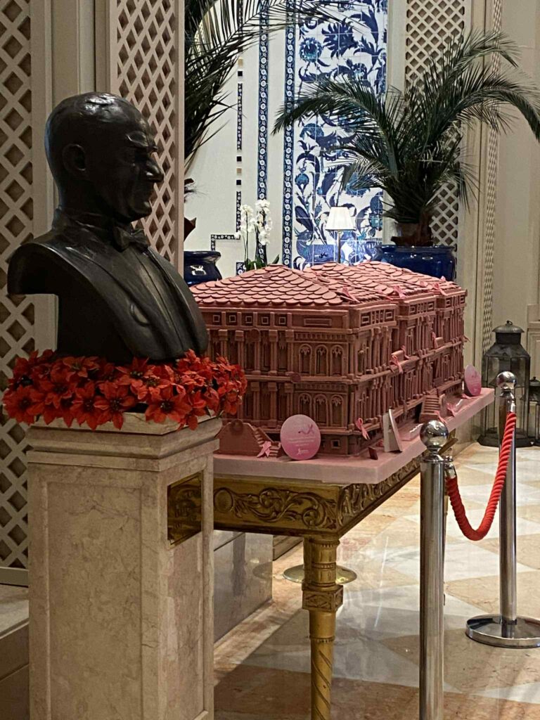 Гигантски розов шоколад, изработен ръчно от сладкарите на хотела за шест дни, посреща гостите във фоайето и ще бъде придружен от информационни карти с факти и послания за превенция.