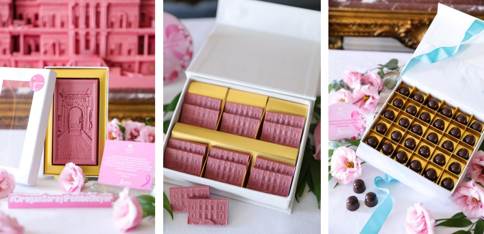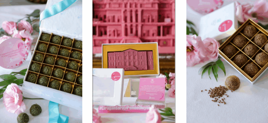 В Çırağan Palace Shop се предлага специална колекция „Pink Delights“ – здравословни, беззахарни изкушения, като всички приходи от продажбите в края на месеца ще бъдат дарени на MEMEDER.