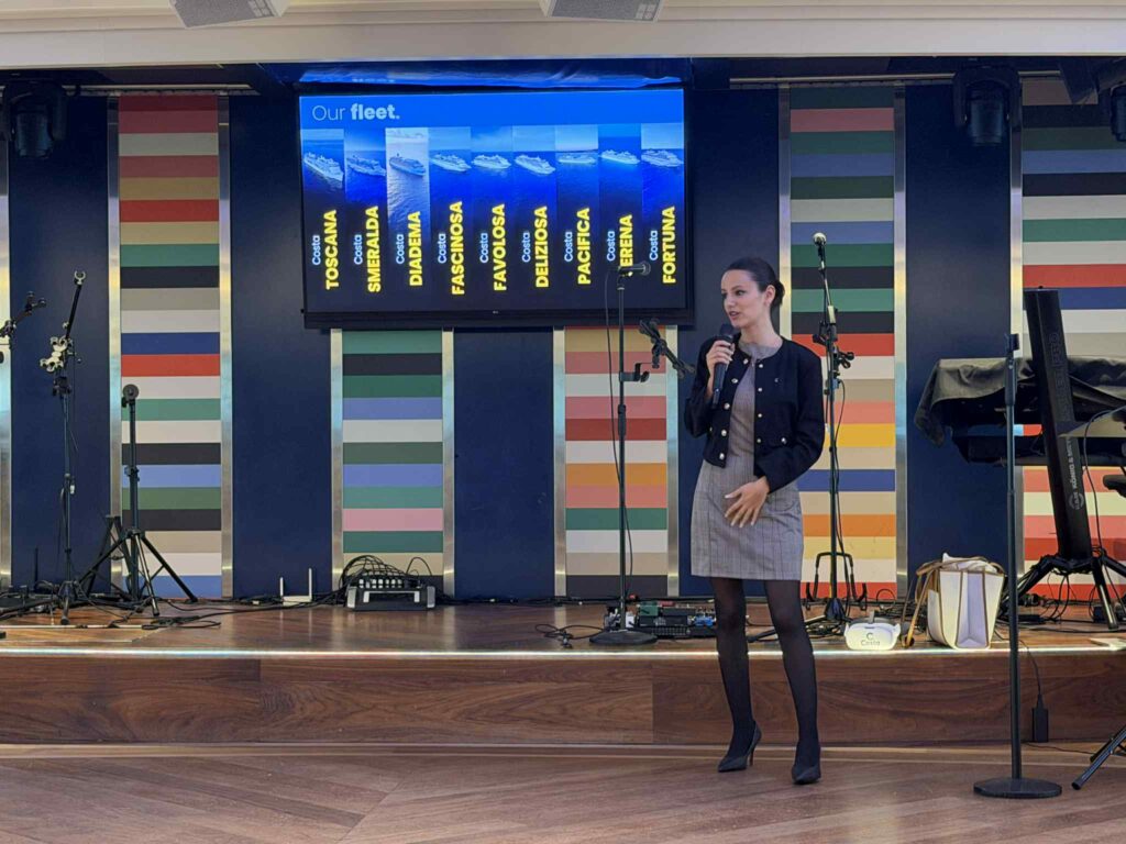 Гостите бяха посрещнати от Луиза Бордеа, мениджър „Бизнес развитие“ за Унгария, България и пазарите от ОНД към международния регион на Costa Cruises. Тя представи основната мисия на бранда и подчерта дългогодишната история на компанията, основана през 1948 г. в Генуа, Италия.