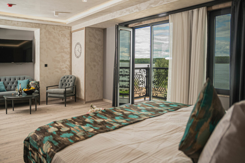 Новият четиризвезден хотел се намира на самия бряг на река Дунав – между центъра на град Козлодуй и кораба „Радецки“. Разполага с 25 просторни двойни стаи с гледка към реката или към града, с 8 апартамента и един луксозен VIP апартамент на петия етаж.