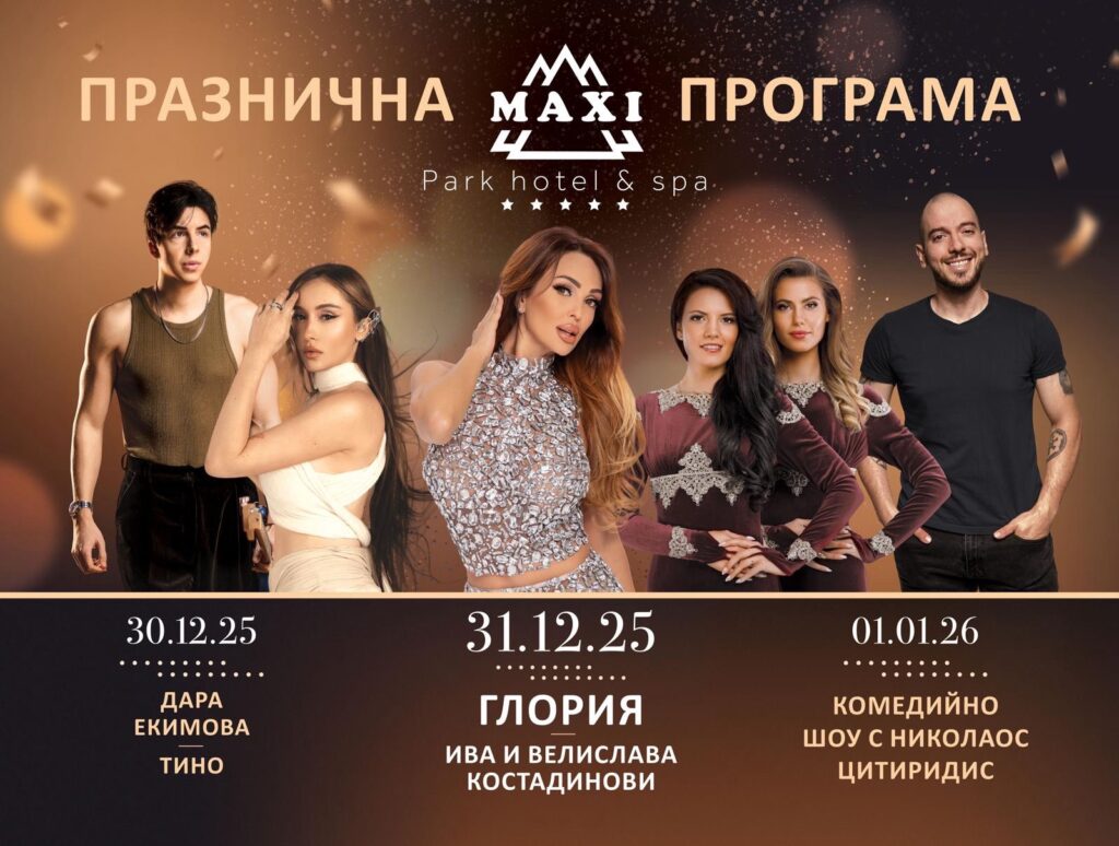 Велинград. Емблематичният Maxi Park Hotel & Spa във Велинград кани гостите си да посрещнат Новата 2026 година с обновен лукс и разнообразна празнична програма. Хотелът, разположен в най-големия естествен боров парк на града, е единственият в региона, който се захранва от три минерални извора с различни лечебни свойства.