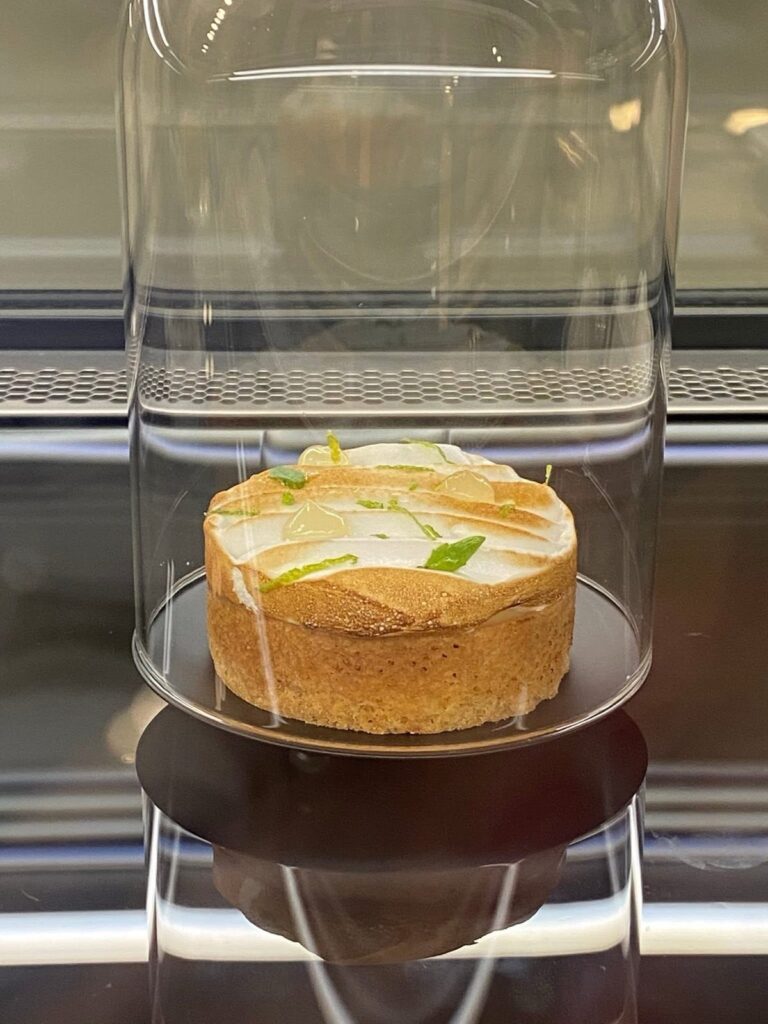 Le Citron – Хрупкава бисквитка с лешниково брашно, последвана от нежен бадемов крем, върху който удобно се разполагат гел с лайм и босилек, наситен лимонов крем и ефирен италиански меренг.