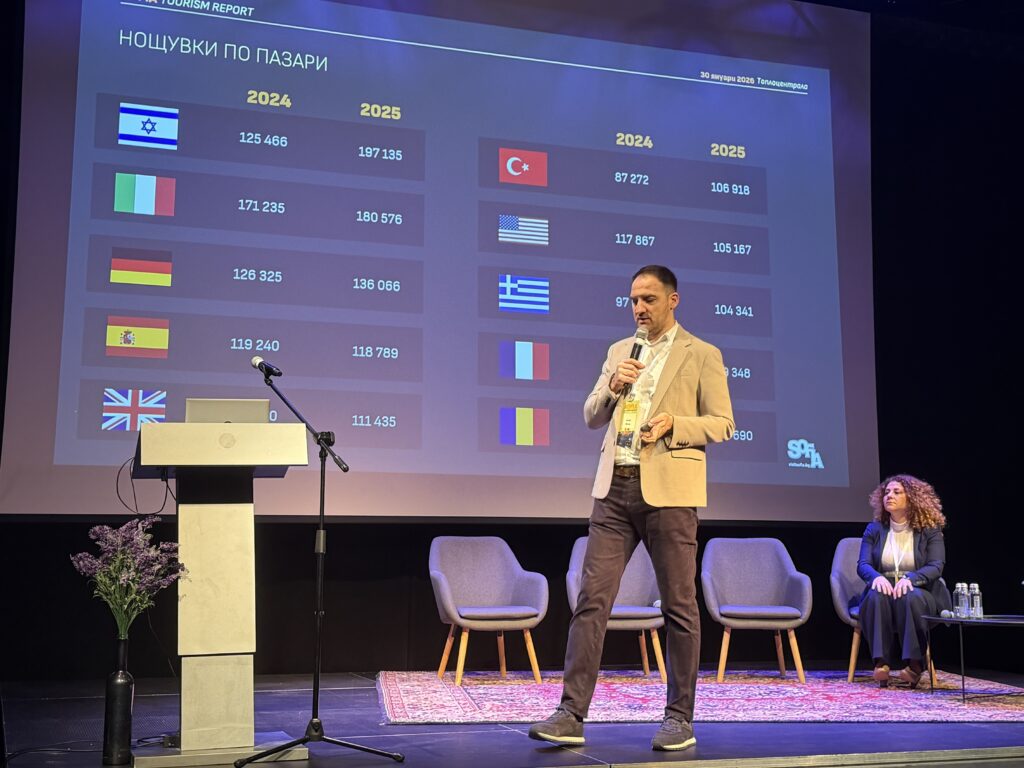 Сред водещите входящи пазари през 2025 г. отново е Италия, следвана от Израел, който отбелязва най-силен ръст – над 60% при нощувките. Германия, Турция и Гърция също запазват стабилни позиции. В същото време пазарът на Великобритания отчита спад, който Visit Sofia анализира в пряка връзка със свързаността и намалените полети. Нови възможности се очертават при пазари като Полша, Северна Македония, Китай и Португалия.