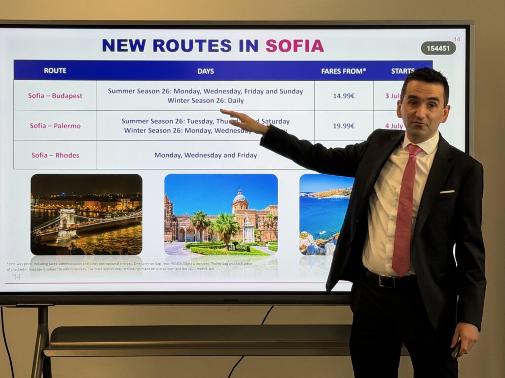 Сред новите маршрути от София са полети до Будапеща, италианския град Палермо, гръцкия остров Родос, както и до популярните египетски курорти Хургада и Шарм ел Шейх. Авиокомпанията потвърди и възобновяването на полетите до Корфу и Сантандер, което допълнително обогатява европейската ѝ мрежа. Новината съобщи Андраш Сабо – директор “Развитие на маршрутната мрежа” в Wizz Air.