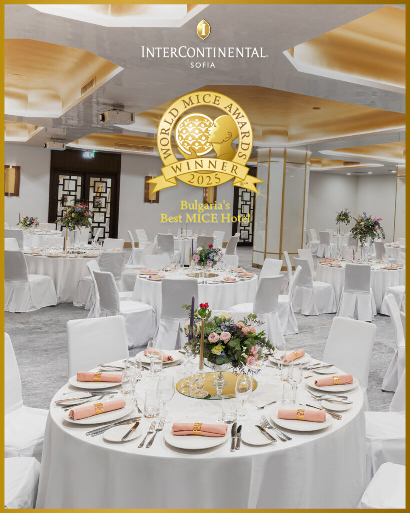 София. InterContinental Sofia постави още един категоричен знак за лидерство в премиум сегмента на хотелската индустрия. След серия от международни признания през годината, петзвездната емблема на столицата добави поредното престижно отличие към своята колекция – титлата „Най-добър MICE хотел в България“ от World MICE Awards. Така международният бранд безапелационно потвърди репутацията си на водещ избор за организация на събития и конференции в премиум сегмента.