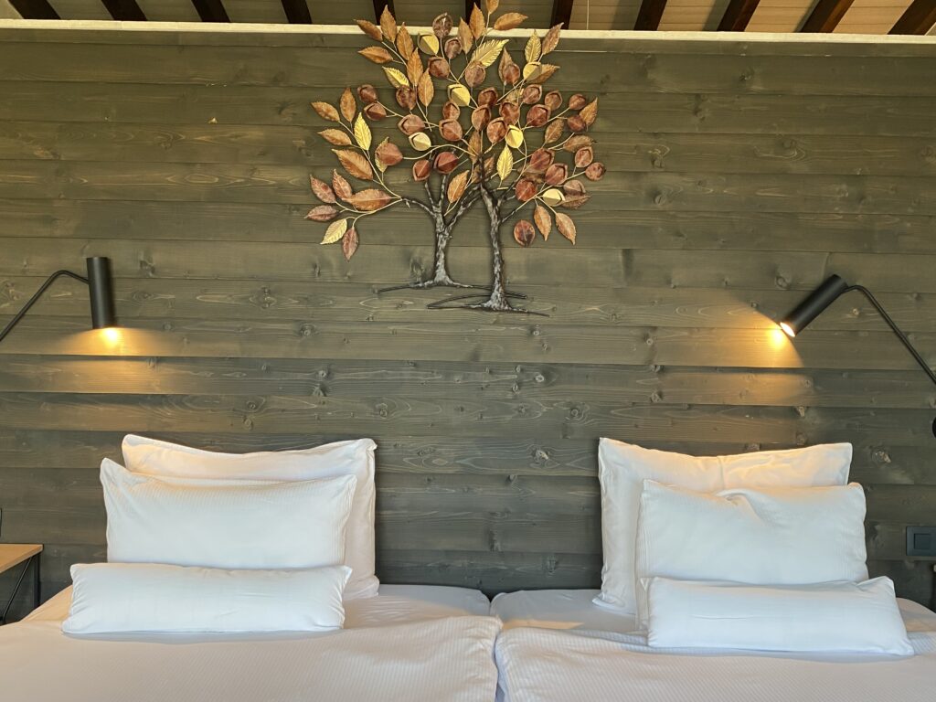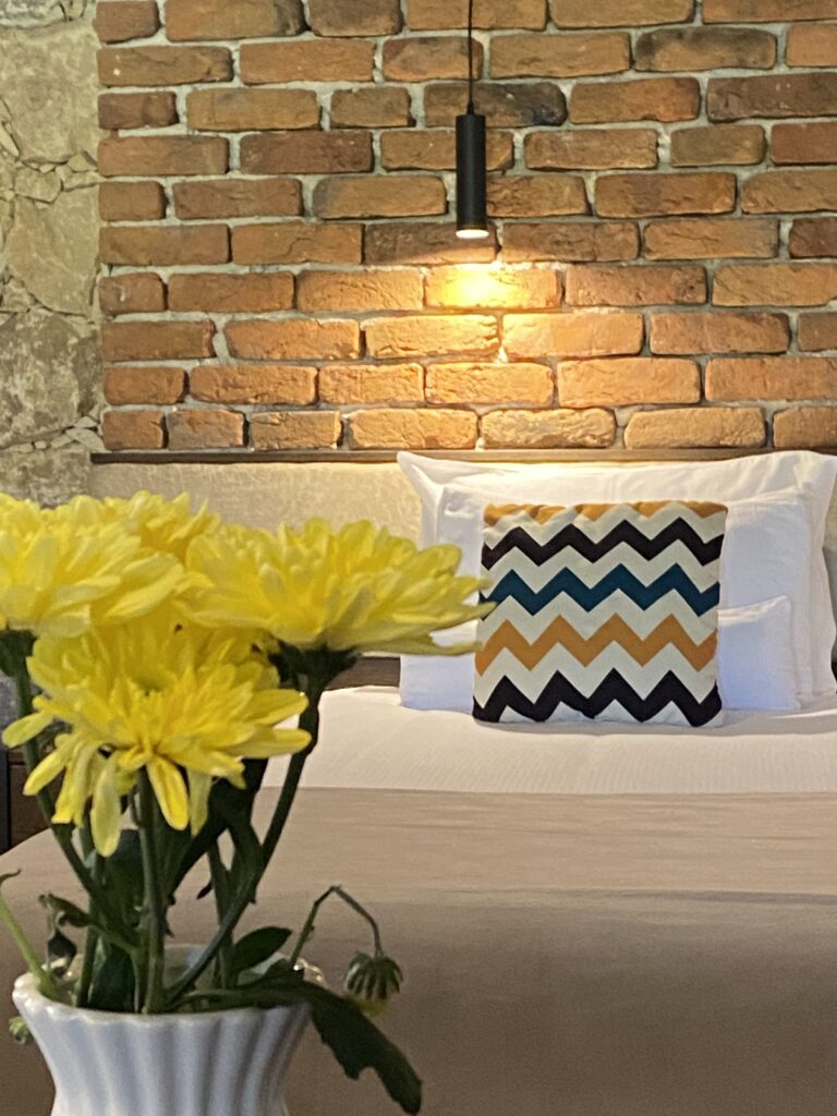 Архитектурата следва тази философия – камък, дърво, тухла и тоскански дух, разположени така, че постройките да се вплитат в хълмовете и да оставят природата като главен герой. Шестте вили предлагат уединение, камини и гледки, които се променят с движението на слънцето. Хотелската част включва шестнадесет суита – всеки различен като дизайн, но с еднакво усещане за простор, изисканост и спокойствие.
